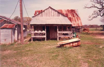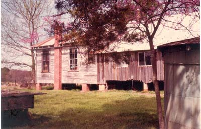 Allendale Plantation, home of dairying in Northwest Louisiana, began when John James Marshall brought some of his slaves westward to work his Louisiana acreage, located off what is now Linwood Avenue Extension, in DeSoto Parish. The name Allendale evolved from a later purchase of a forty-acre farm known as “the Allen place.” The Allen farm has a little one-room log cabin that John Marshall enlarged to accommodate his large family, who were still living in Orange County, Florida. His wife had died when he brought his family to Louisiana’s frontier, and his oldest daughter, then about 18, came to help take care of the younger children. John James Marshall continued to acquire acreage surrounding his farm until, in 1860 he owned 3,040 acres, with 1,000 acres under cultivation. Allendale had 92 servants, living in 23 slave dwellings on the plantation. It was Mrs. John Julian (Mattie) Marshall who introduced the first registered Jersey cow into Northwest Louisiana, purchased by her in 1885. In 1927 a Shreveport newspaper reported that most of the dairy cattle in northwestern Louisiana descended from Allendale stock. The barn built to serve that dairy herd of the 1880's is still in use at Allendale for today’s beef herd. John James Marshall came to Louisiana after operating several plantations in South Carolina and Florida. He was a law school graduate, having spent 1825 through 1827 studying law in Philadelphia. His brother, Henry Marshall, established a plantation in DeSoto Parish well-known as Land’s End Plantation. The elaborate home at that site was built to replace an original dog-trot that was the first home of the Henry Marshalls in Louisiana in the 1860's. The home at Allendale is far more typical of early Louisiana plantation homes than the popular pillared mansions. It did, however, have some distinctions over average log cabins of the area. The walls were built of square-hewn oak, rather than the more common pine, and chinked with clay and straw instead of more widely used split-boards, nailed over cracks between the logs. The Allendale logs were joined with square notches at the corners. The style of the house, now known as the “dog trot,” evolved from two original “single pen” cabins, joined together by the familiar open-end passageway found in many frontier homes in northern Louisiana. Family correspondence indicates that John Marshall added to the log house before moving in with his family in 1854. A second “dog trot” was built a few feet away, parallel to the first and joined by a porch which lined up with the open passages. The second portion was demolished in 1930 by the present owner, Henry Marshall, Jr., but family snapshots show the two houses connected by the porch. The first cooking was done in a separate building behind the main house until the present kitchen wing of board and batten construction was added in the 1880's at the southeast corner. A bedroom and bath wing were added on the west end in 1933. Along the east side of the house is a shed room which covers the two small end rooms and forms an extension of the now enclosed passageway. An old wooden cistern still stands behind the house. The cistern was converted into a playhouse by a later generation of Marshall’s. The north end of the passage is enclosed by two batten doors and two glazed doors, moved there from the second dog trot in 1930. At that time the east room was paneled to match the west log room, which had been paneled with vertical pine boards in 1870. About half of the original roof framing remains. Beneath the sheet metal roofing can be seen wood shingles, probably native cypress or cedar shakes. Chimneys are of molded mud brick. Windows reveal various details of construction., and very thin mullions on some windows and on the front doors appear to have been made with hand tools. In 1887 John Julian Marshall donated four acres of Allendale for construction of All Saints Episcopal Chapel, located on the Stonewall-Frierson Road now, less than a mile from the Allendale home. A “considerable number of free men of color” from neighboring plantations are listed among the donors to the building. It is indicated they attended early services at the chapel. Contributions from South Carolina, Indiana and Florida were listed as “foreign.” All Saints’ Episcopal Church was consecrated on February 6, 1887. Over the chapel altar is a stained glass window, a memorial to John James Marshall and his oldest daughter, Margaret Olivia Marshall, the first two persons buried in the graveyard adjoining the chapel. Five of the six sons of John James Marshall are buried in the churchyard at All Saints’. The site had been selected and used as a family burial ground before the donation of the acreage to the church, and a number of family members had already been buried when the chapel church was erected. Stained glass windows in the building are intricate, held together with metal braces. Much of the original glass is intact. At the front behind the altar is a communion rail hand carved from a single pine board. The sturdy chapel has walls of solid virgin pine. Benches were tooled fo virgin pine with imported mahogany trim. All Saints is one of the two surviving plantation chapels still in use in Louisiana. Services have been held periodically since its consecration in 1887.
