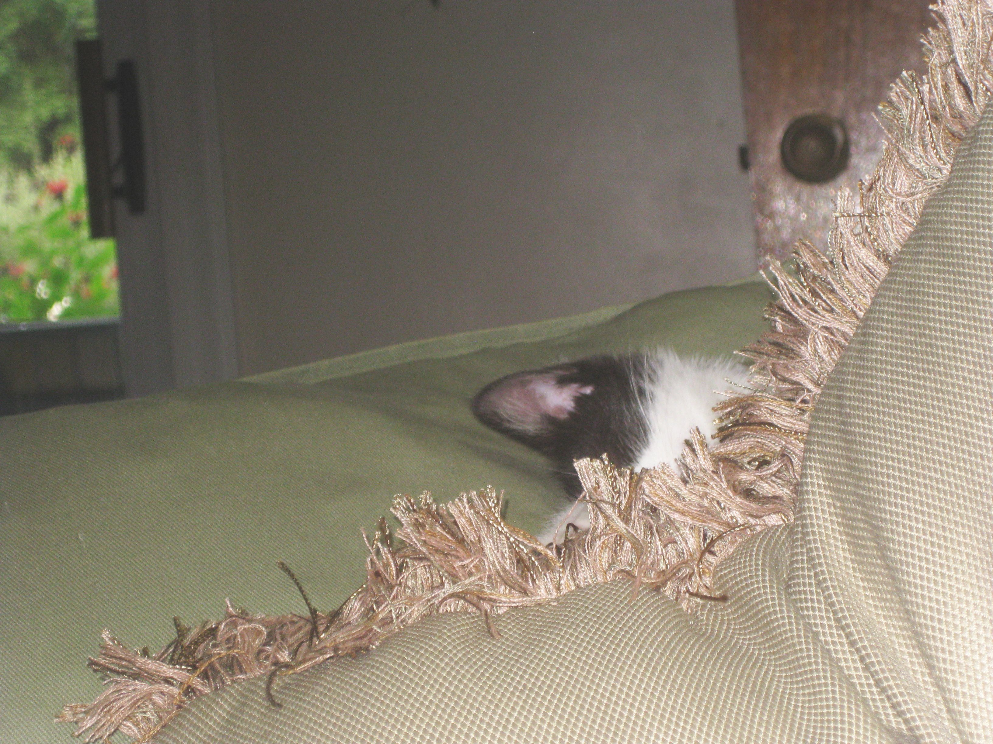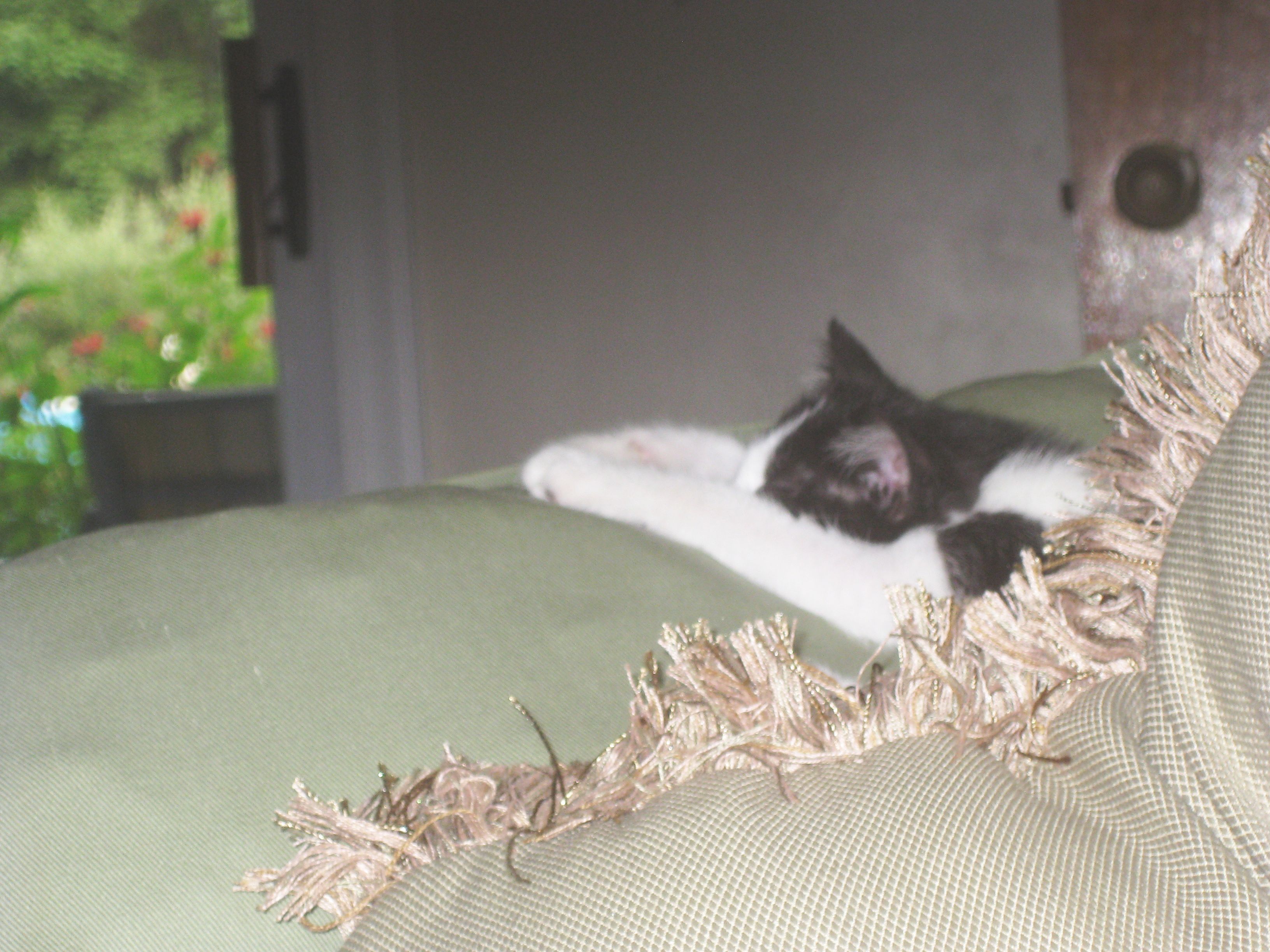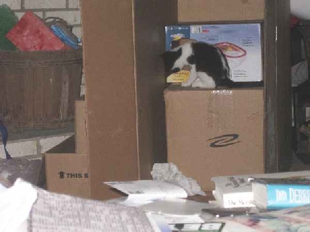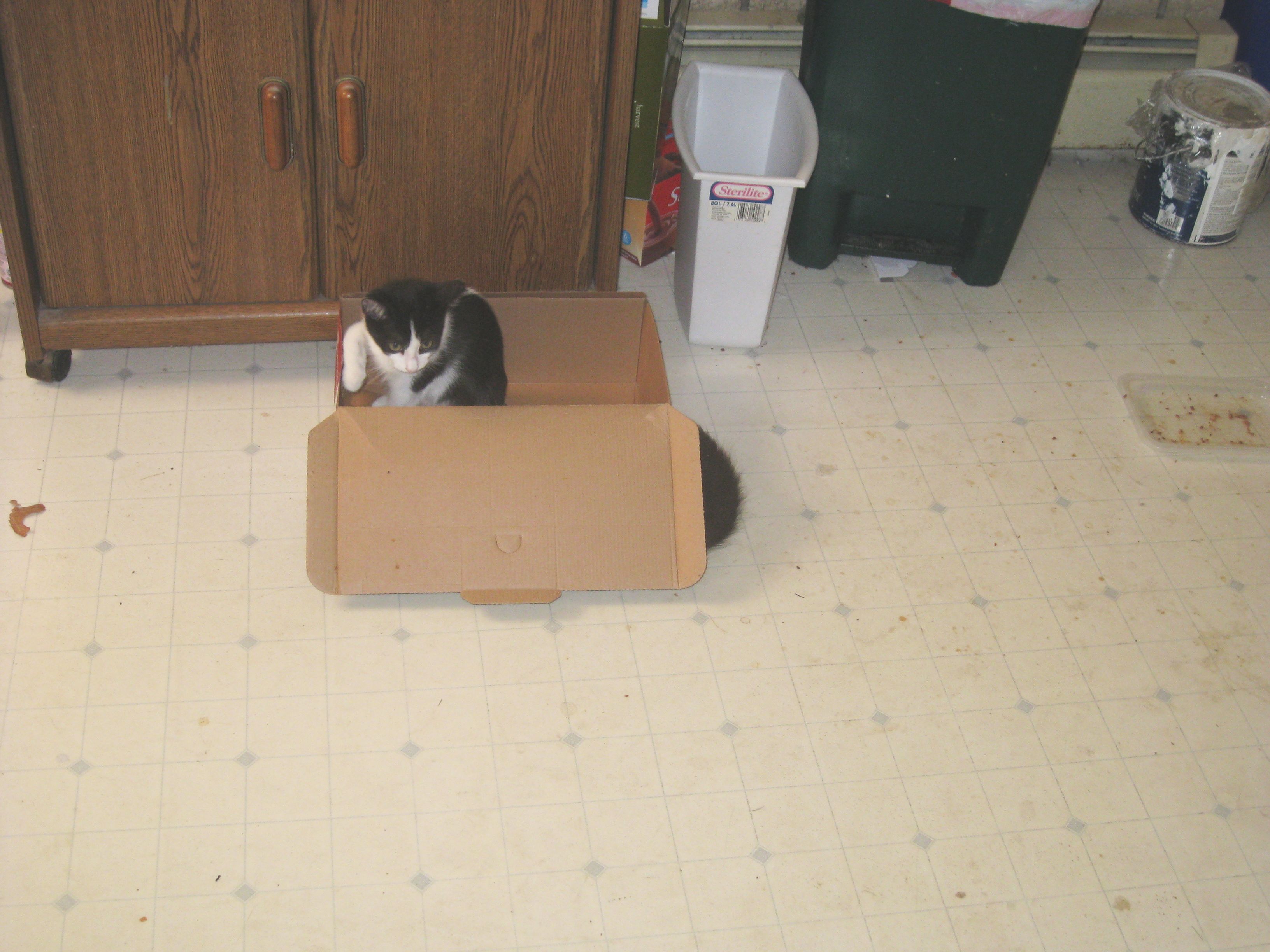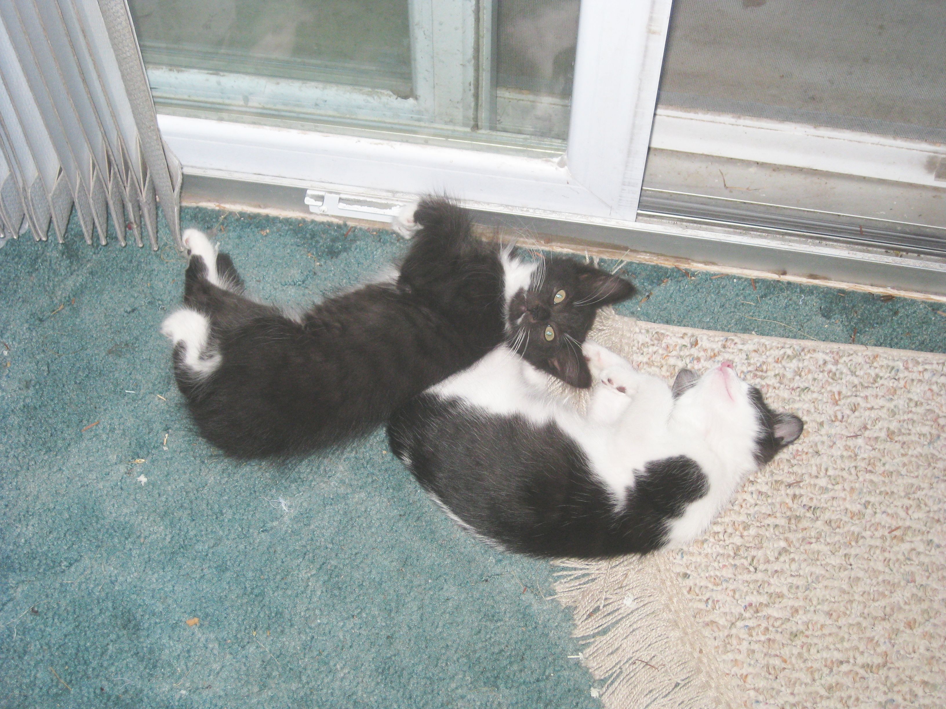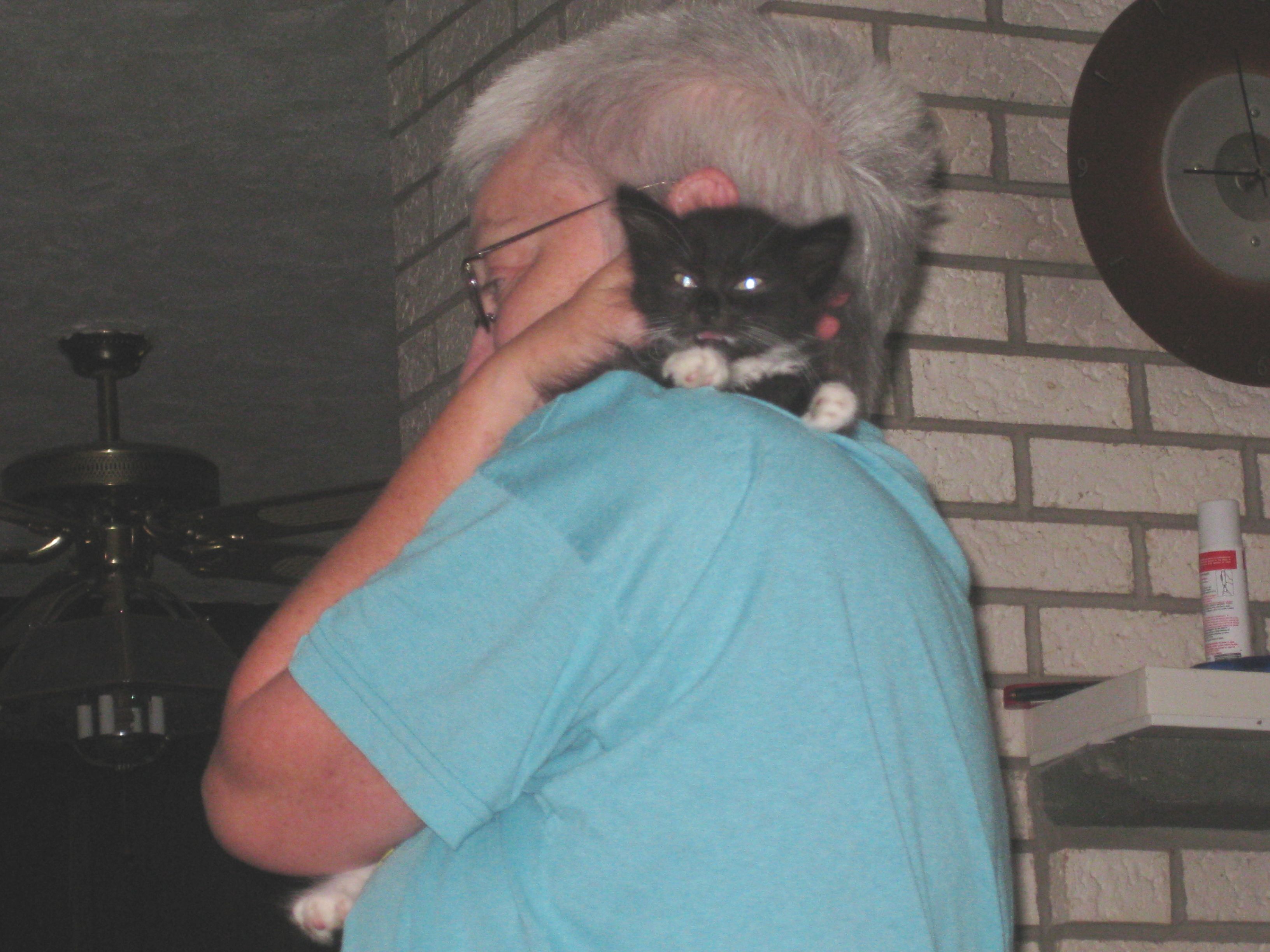 Selma is the, mostly, black cat. She was the "runt" of the litter. They are litter mates. Selma has pretty much lost the "halo" of LONG fur, though you can still see in some of the pictures!! Pips has a lot more white, including a "SKUNK" stripe down her back! As she got older she decided that playing, and sleeping, in the tissue box wasn't enough, she pushed onto the floor and removed all the tissues! She's now to big to fit inside the box.