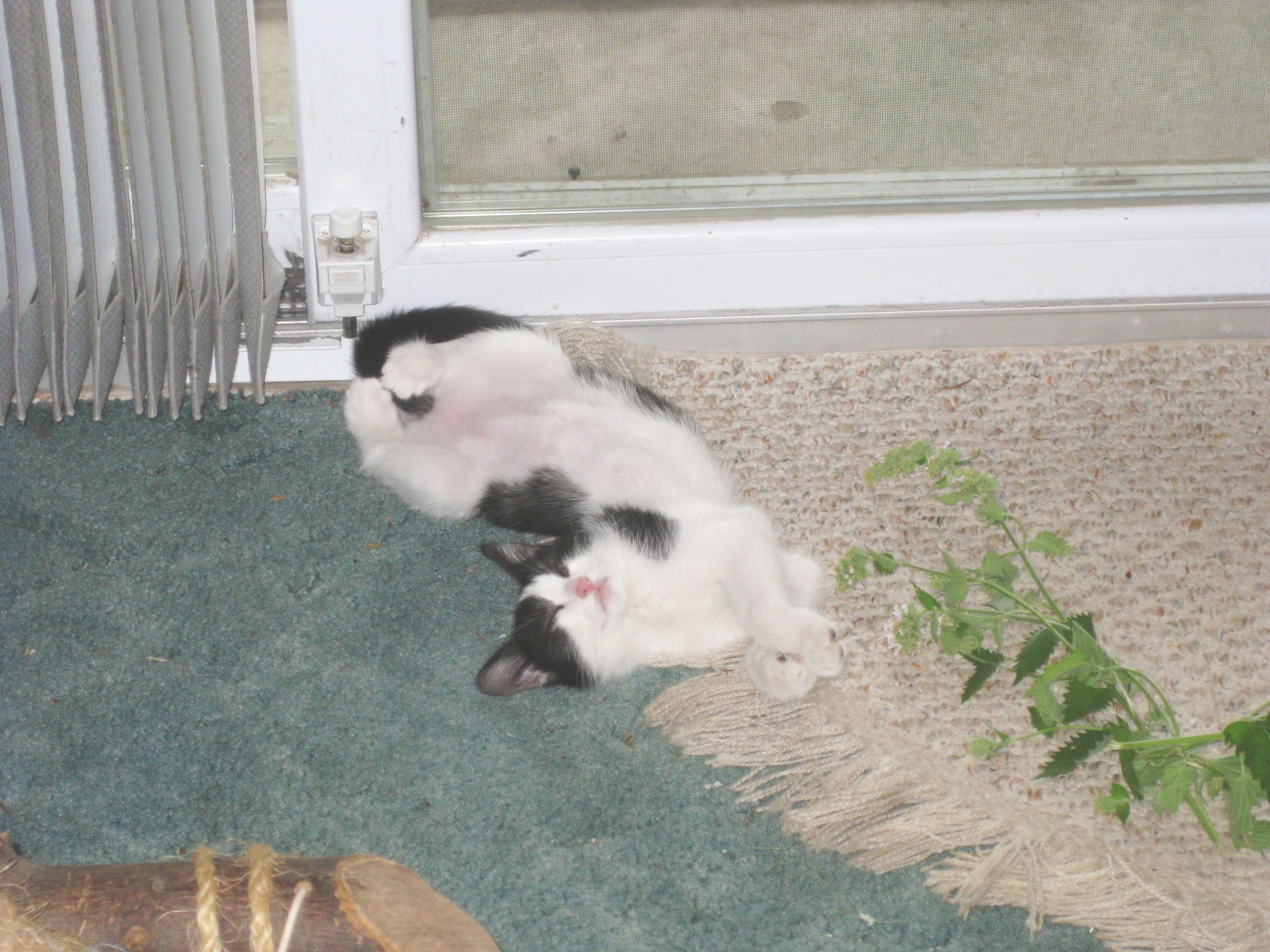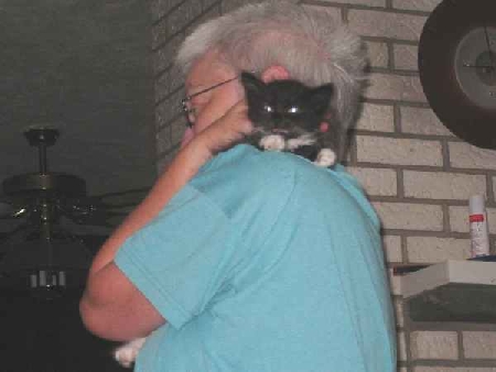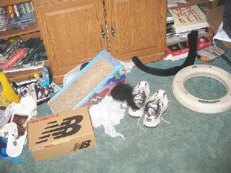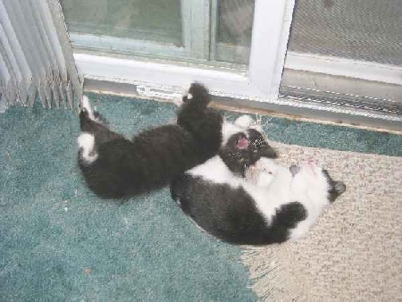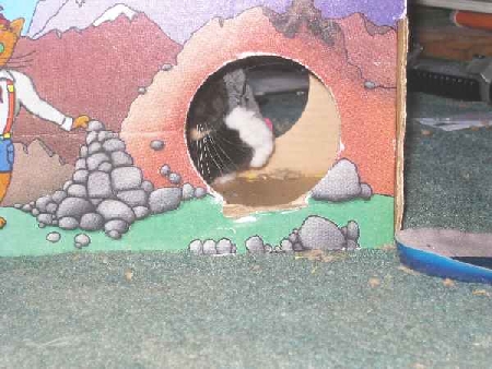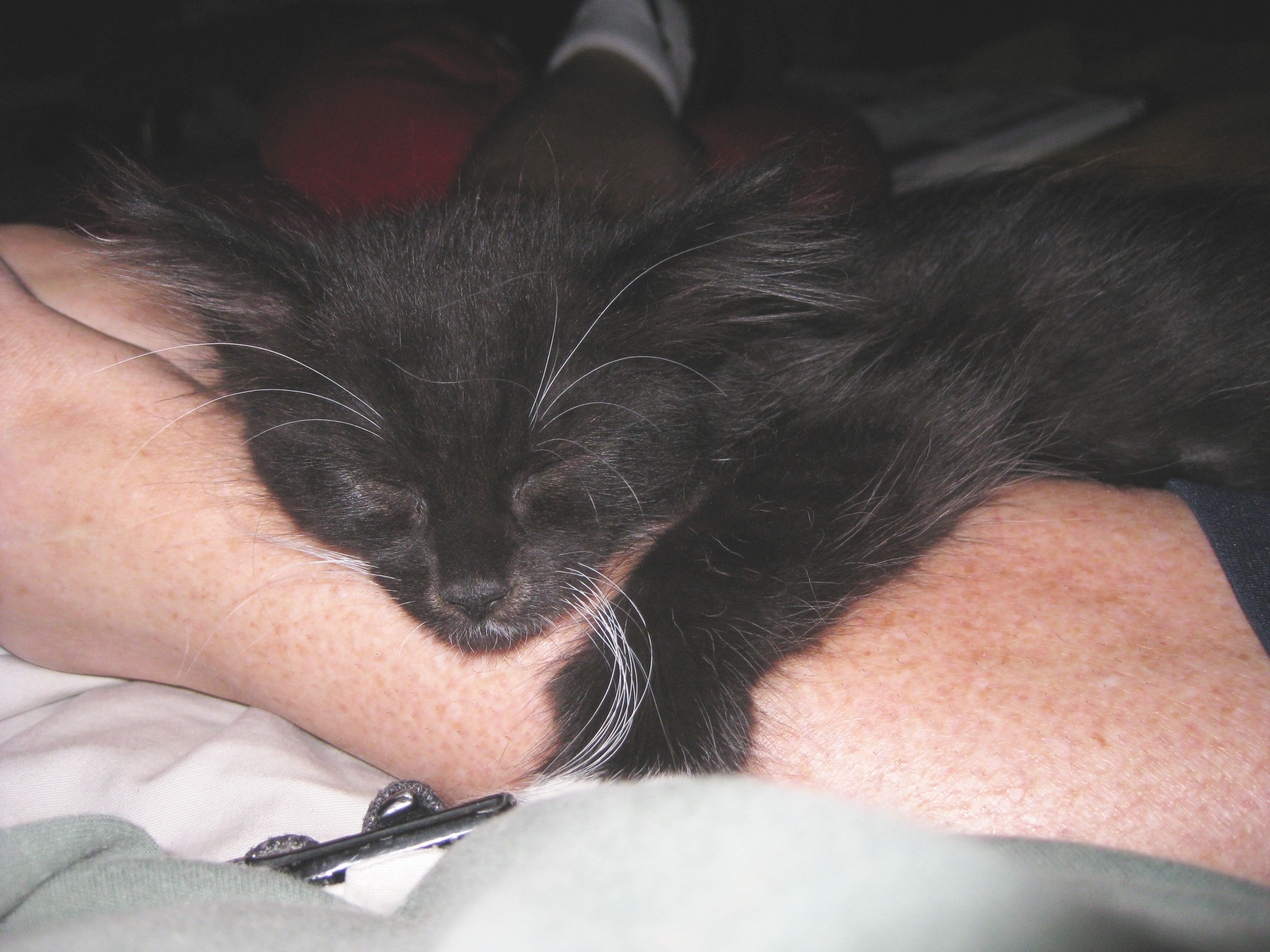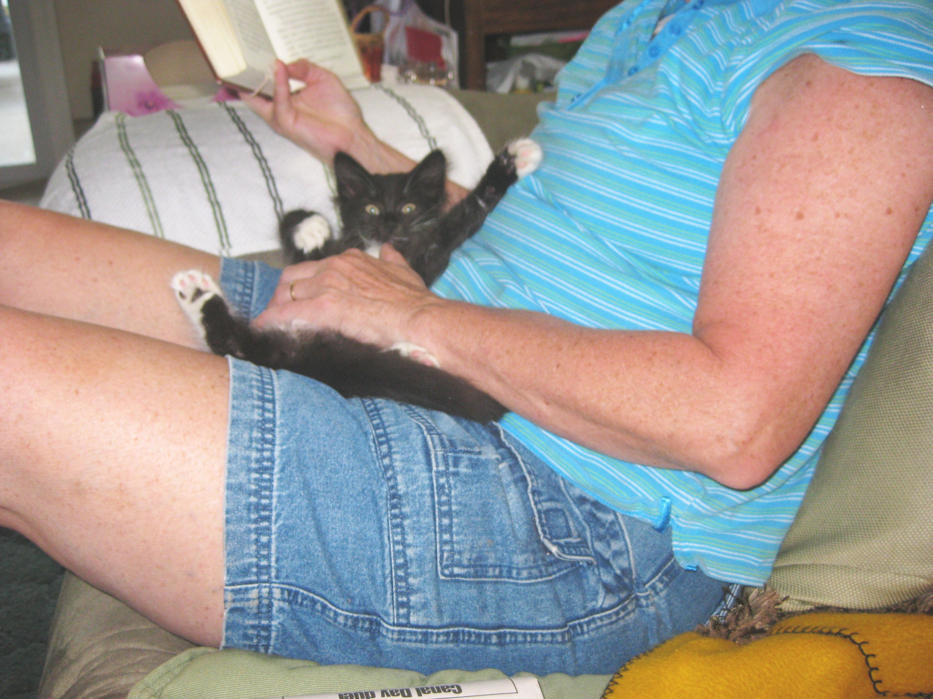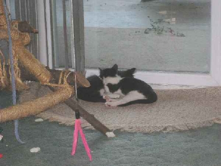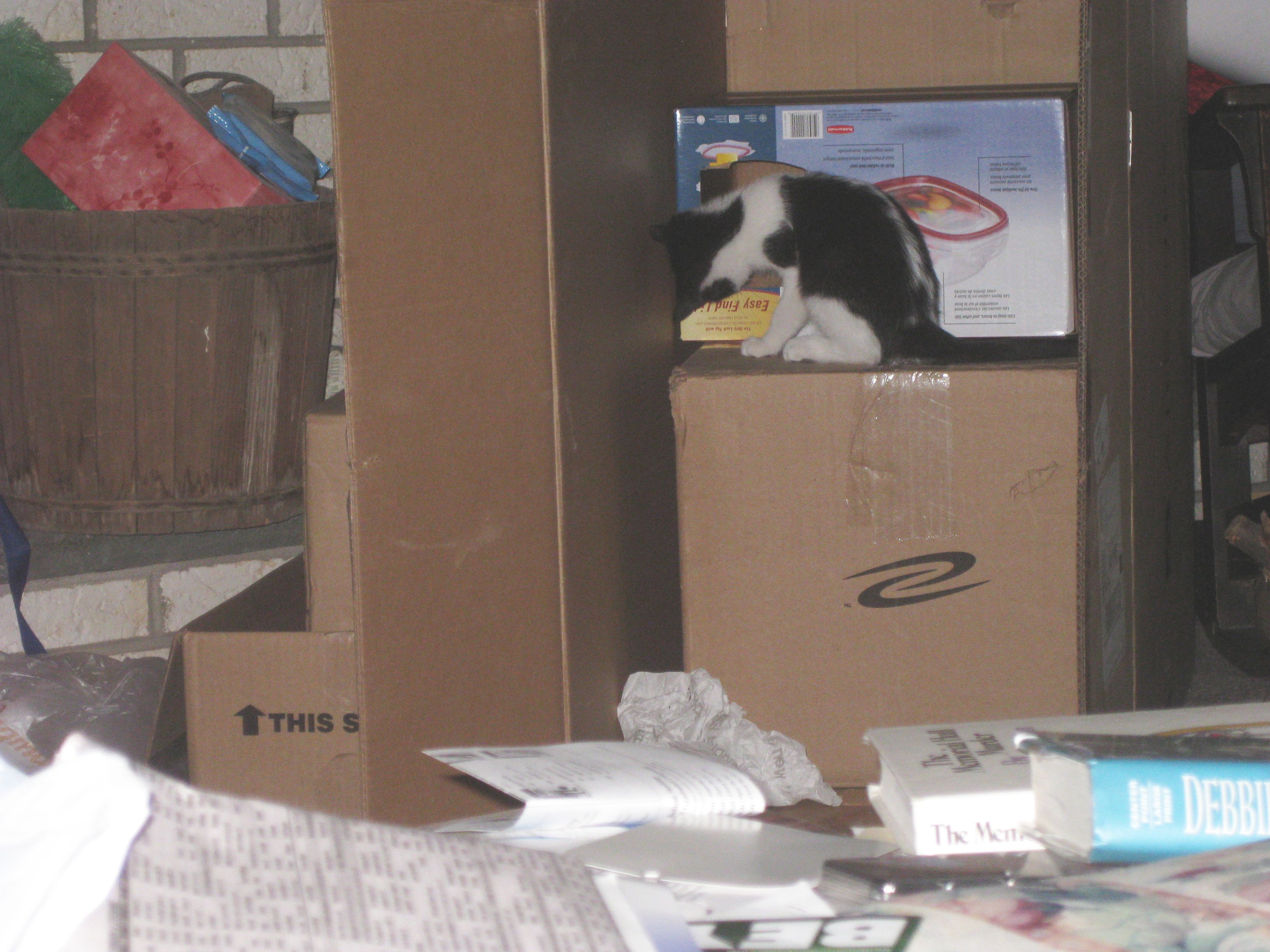 Selma is the, mostly, black cat. She was the "runt" of the litter. They are litter mates. Selma has pretty much lost the "halo" of LONG fur, though you can still see in some of the pictures!! Pips has a lot more white, including a "SKUNK" stripe down her back! As she got older she decided that playing, and sleeping, in the tissue box wasn't enough, she pushed onto the floor and removed all the tissues! She's now to big to fit inside the box.