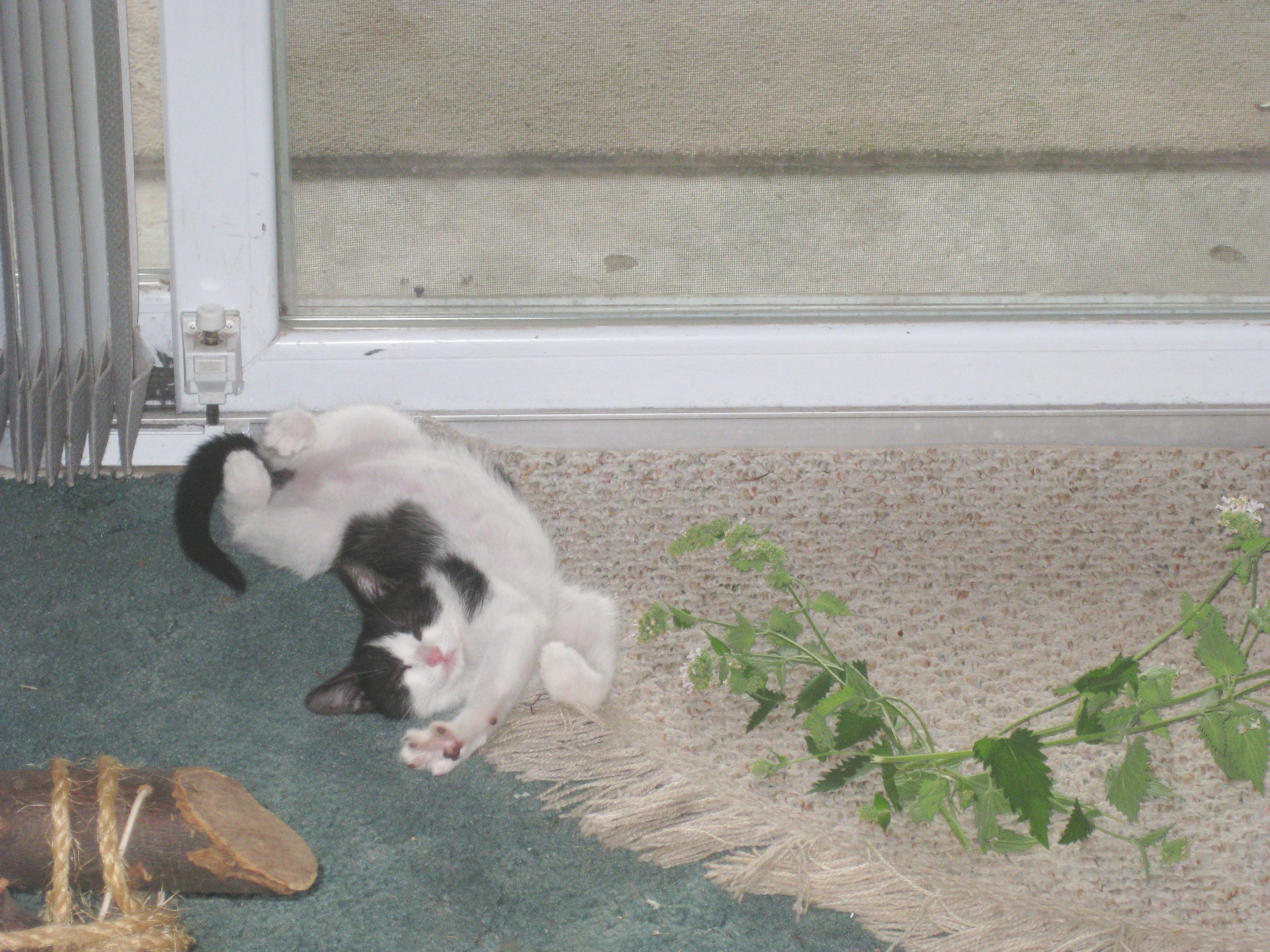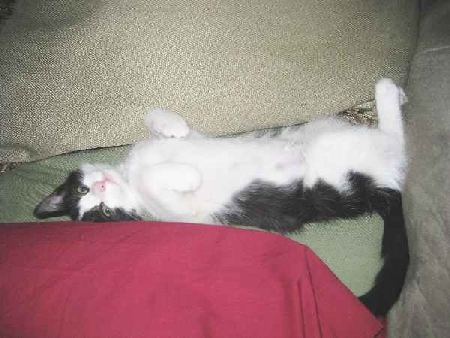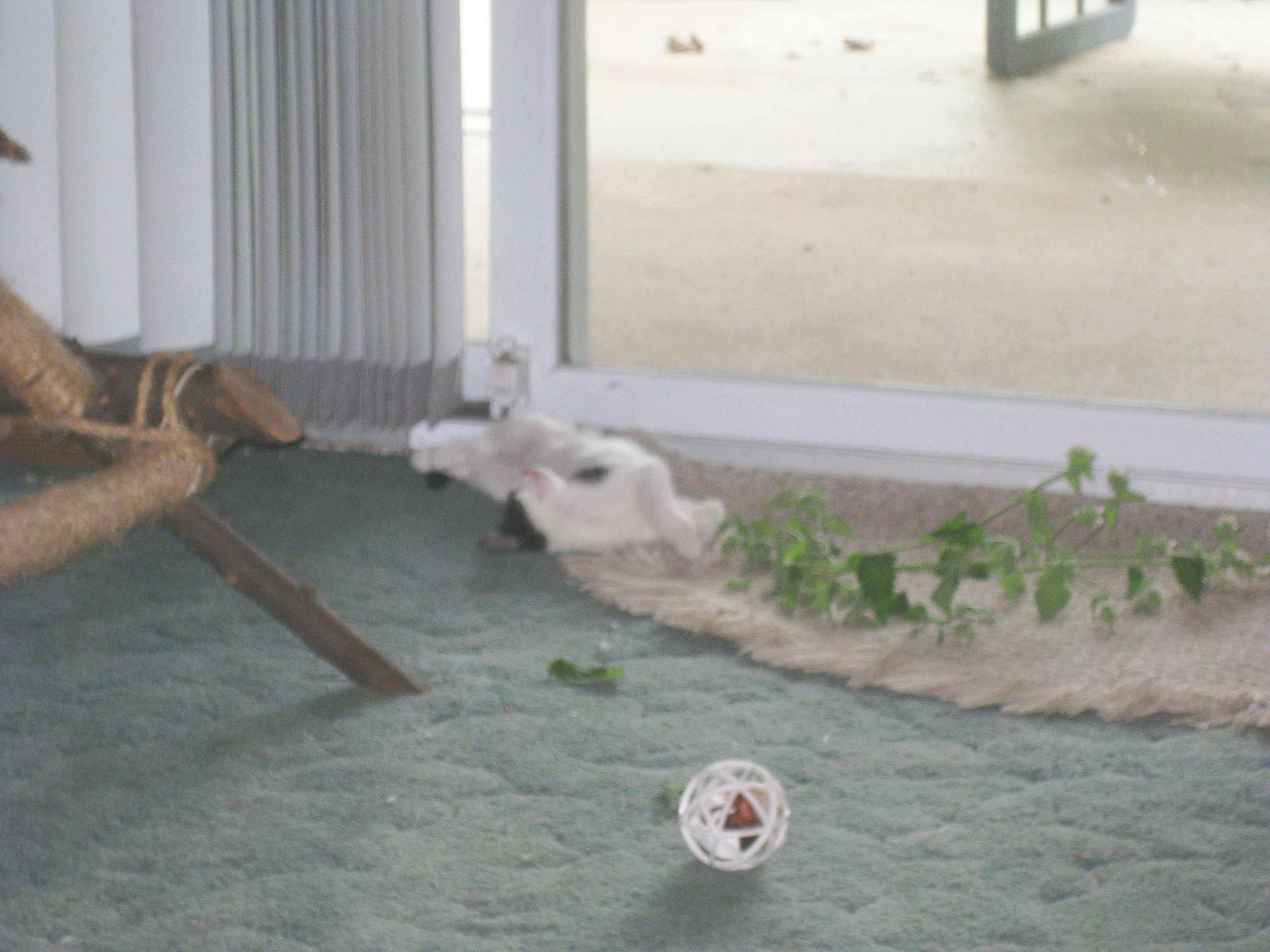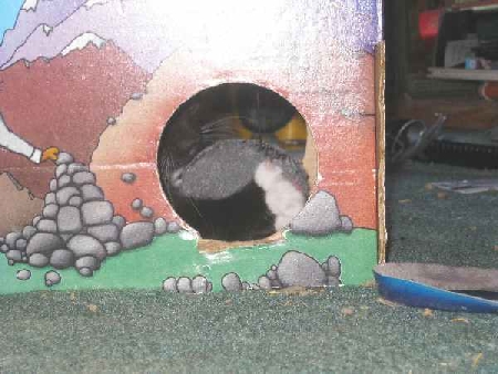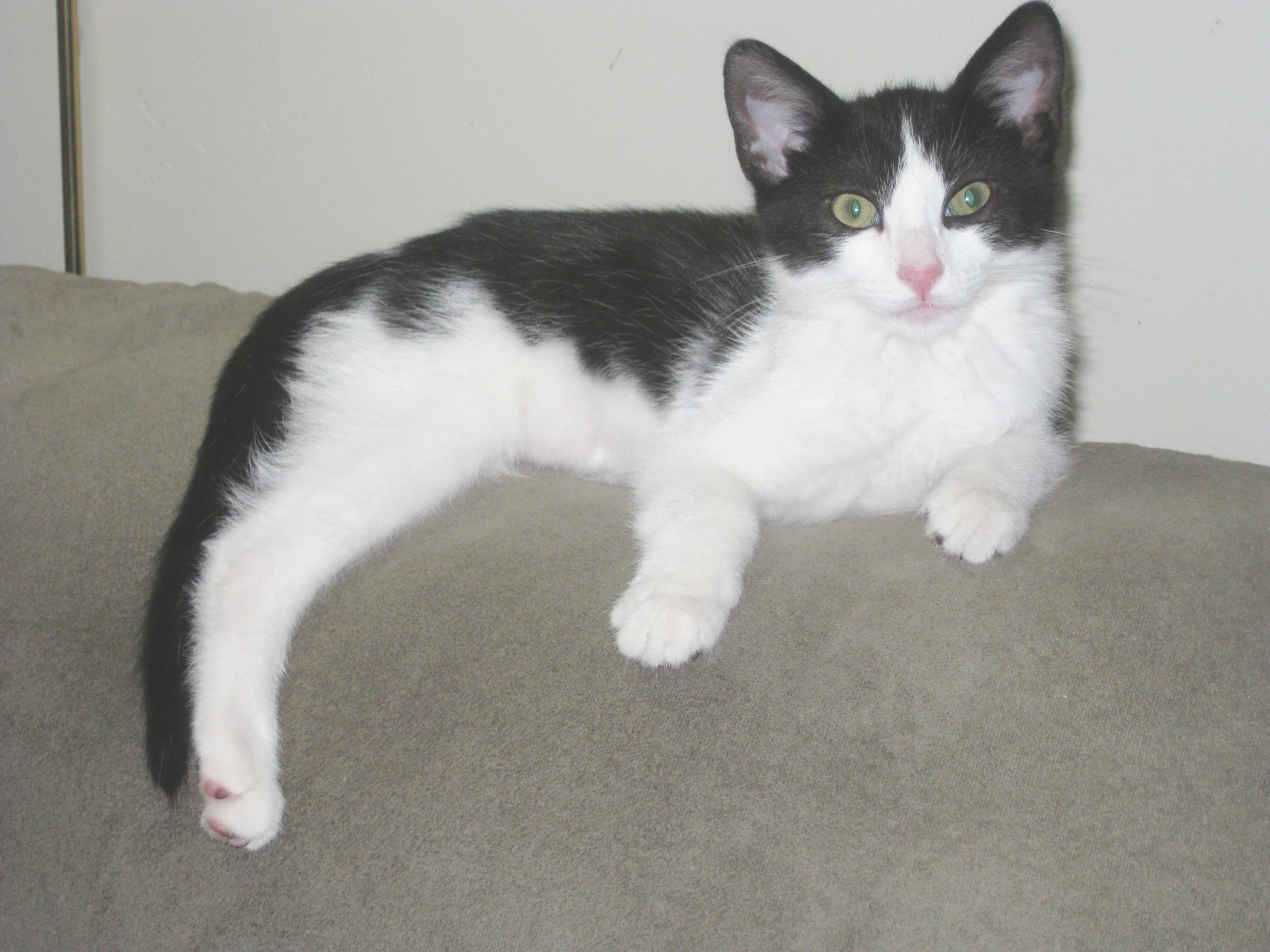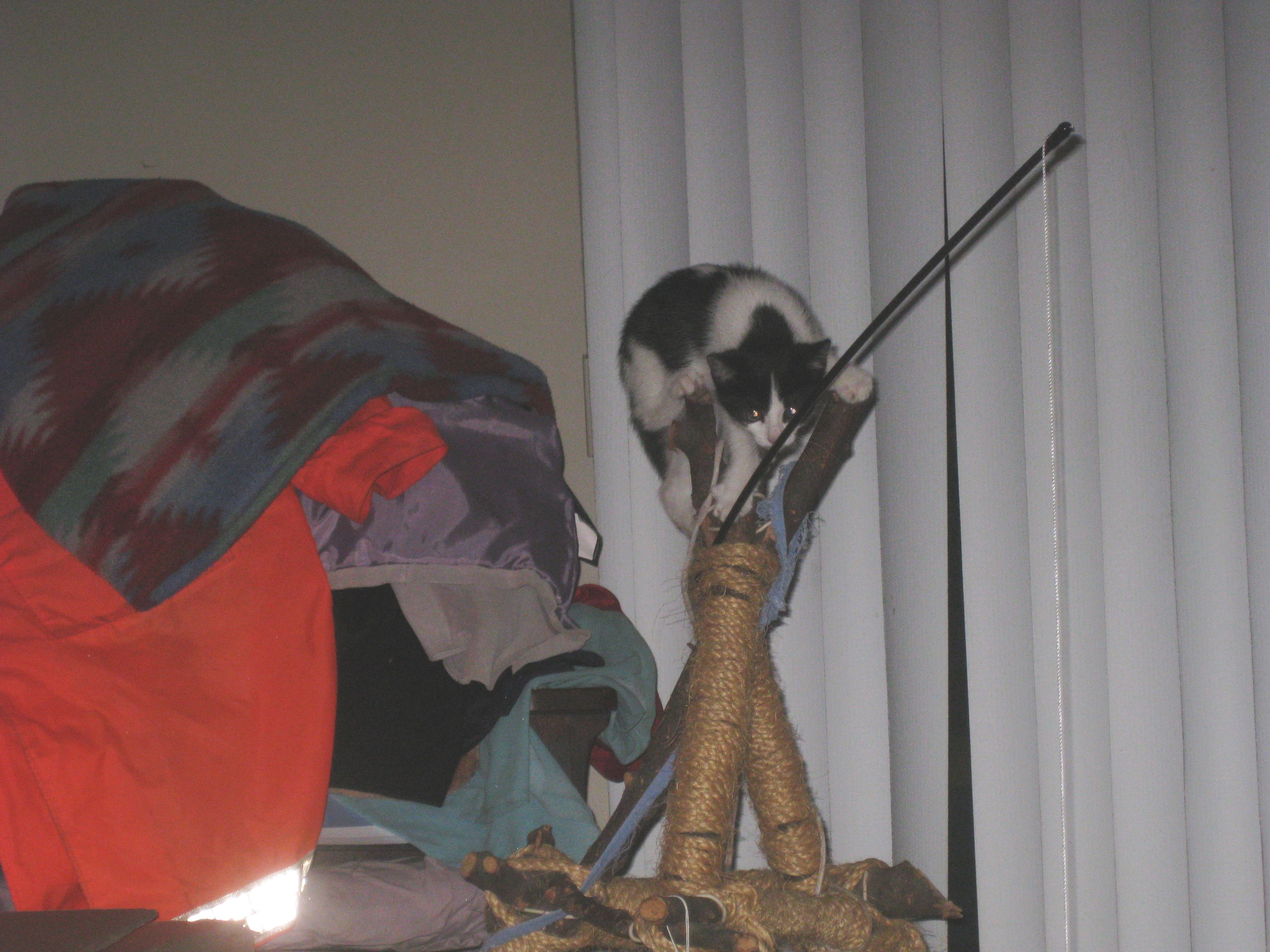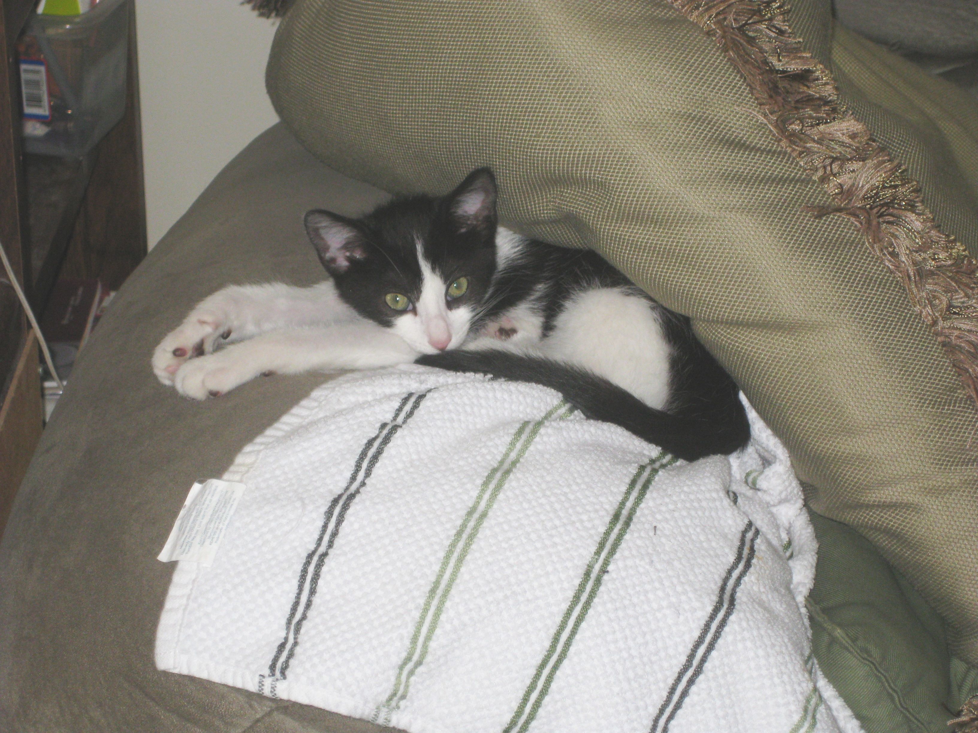 Selma is the, mostly, black cat. She was the "runt" of the litter. They are litter mates. Selma has pretty much lost the "halo" of LONG fur, though you can still see in some of the pictures!! Pips has a lot more white, including a "SKUNK" stripe down her back! As she got older she decided that playing, and sleeping, in the tissue box wasn't enough, she pushed onto the floor and removed all the tissues! She's now to big to fit inside the box.