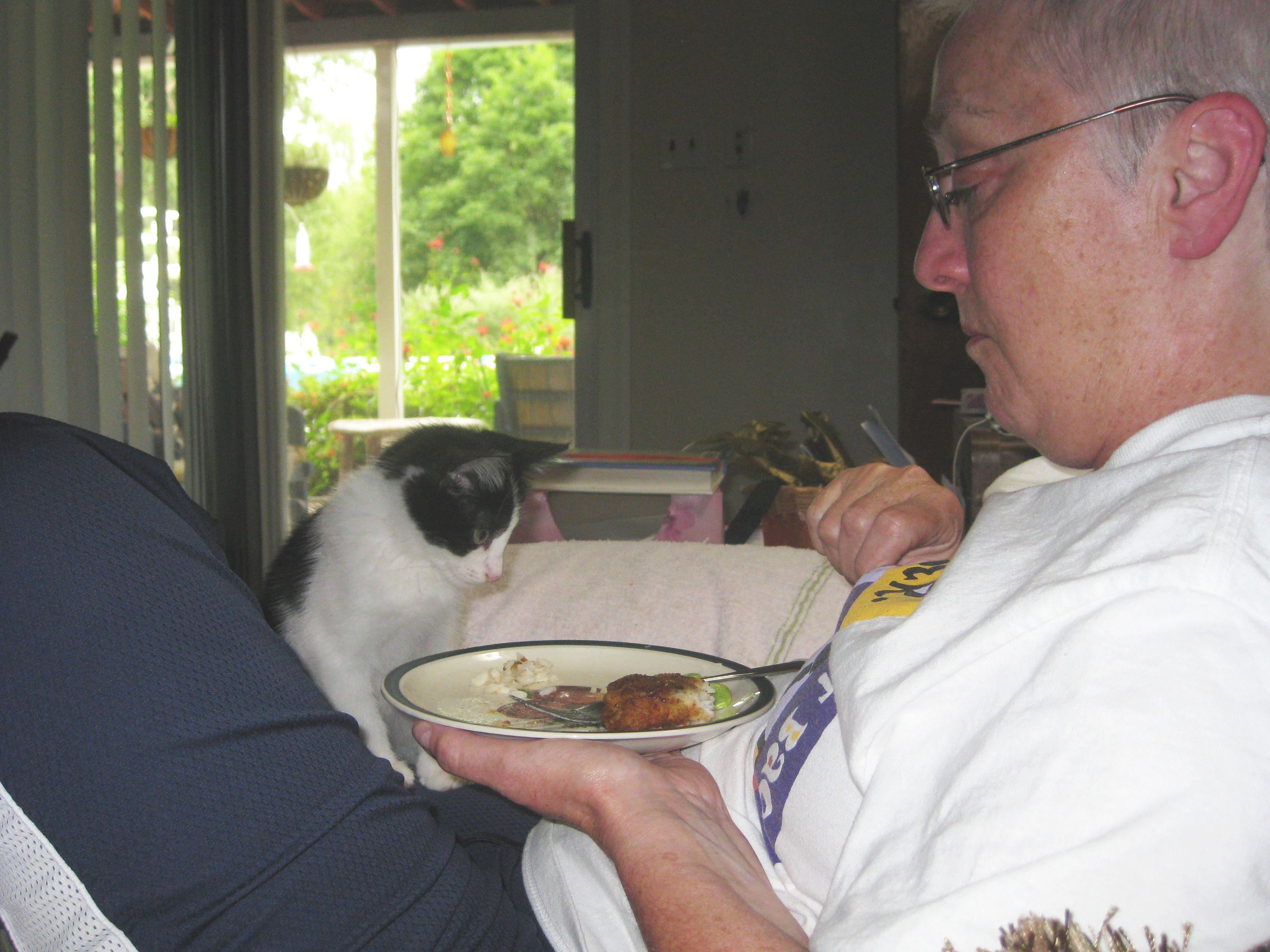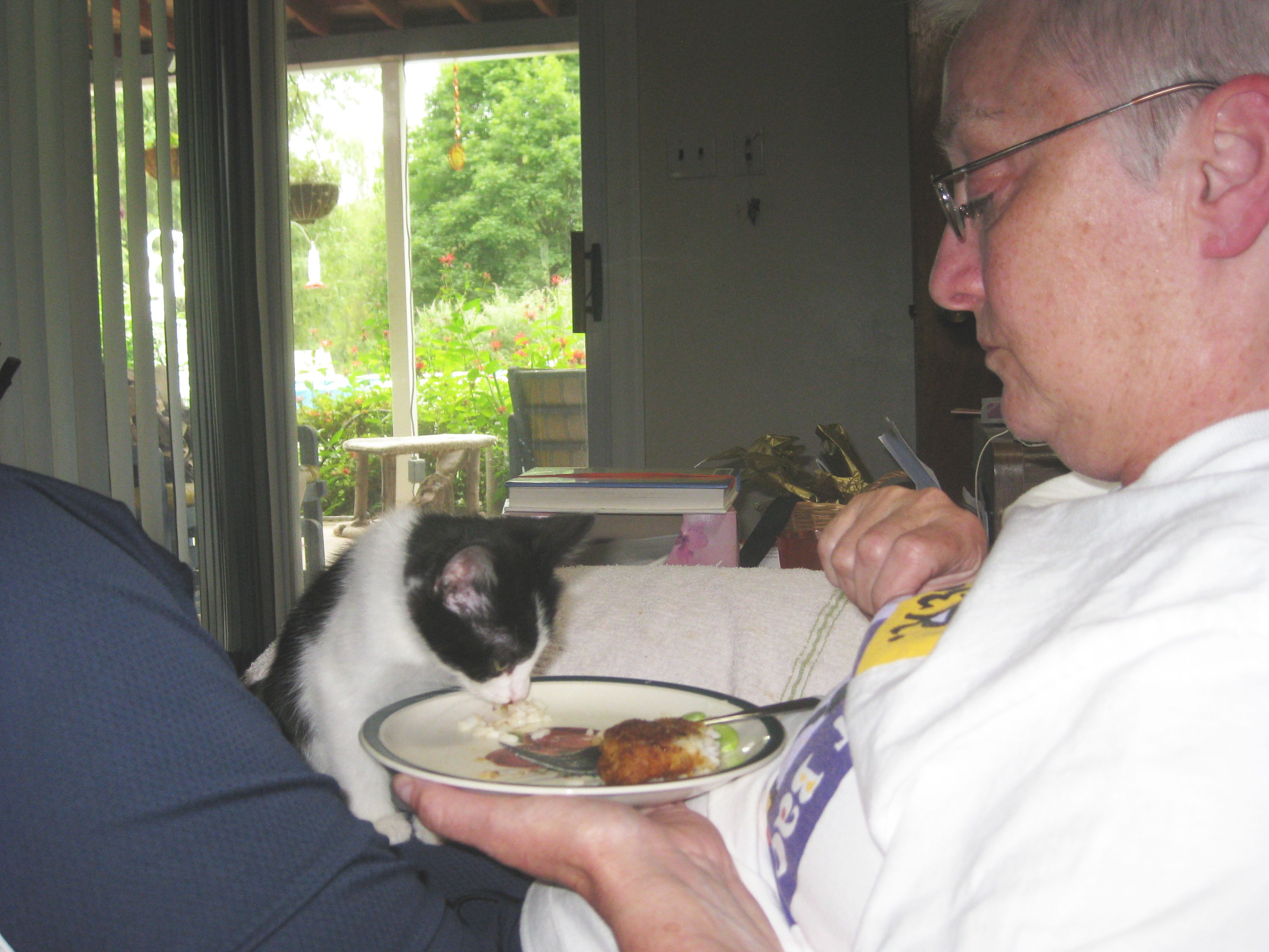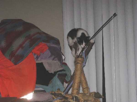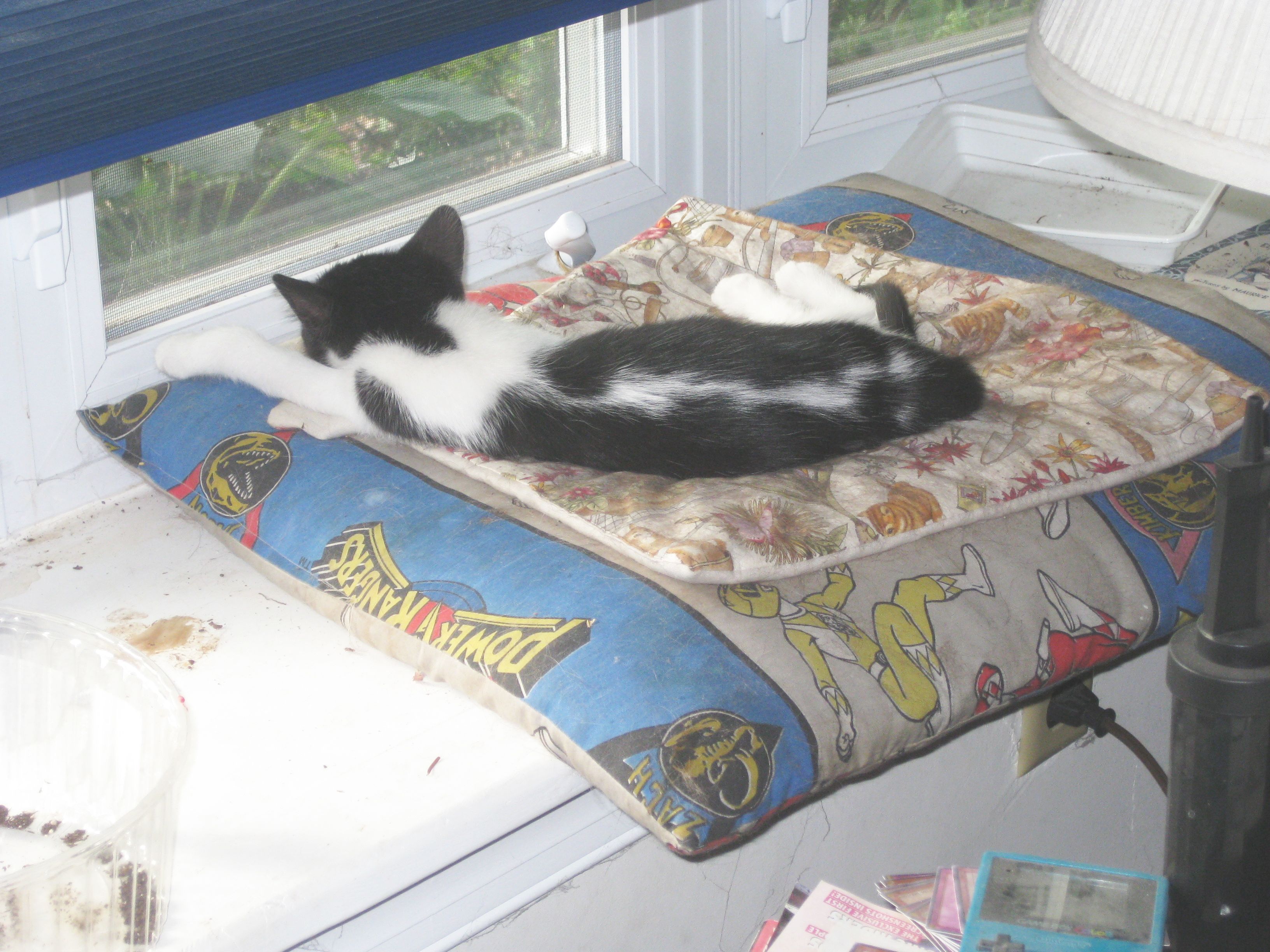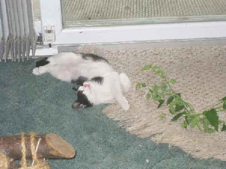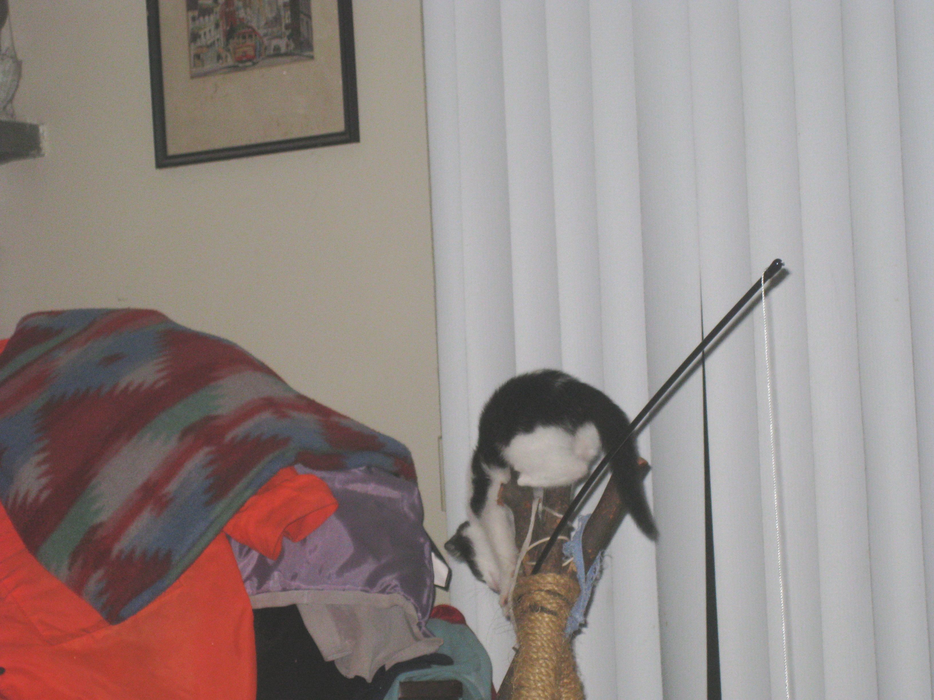 Selma is the, mostly, black cat. She was the "runt" of the litter. They are litter mates. Selma has pretty much lost the "halo" of LONG fur, though you can still see in some of the pictures!! Pips has a lot more white, including a "SKUNK" stripe down her back! As she got older she decided that playing, and sleeping, in the tissue box wasn't enough, she pushed onto the floor and removed all the tissues! She's now to big to fit inside the box.